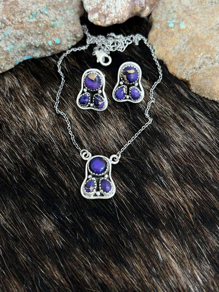 Nom du produit:Ensemble fait main de bijoux Dahilia violet en argent sterling