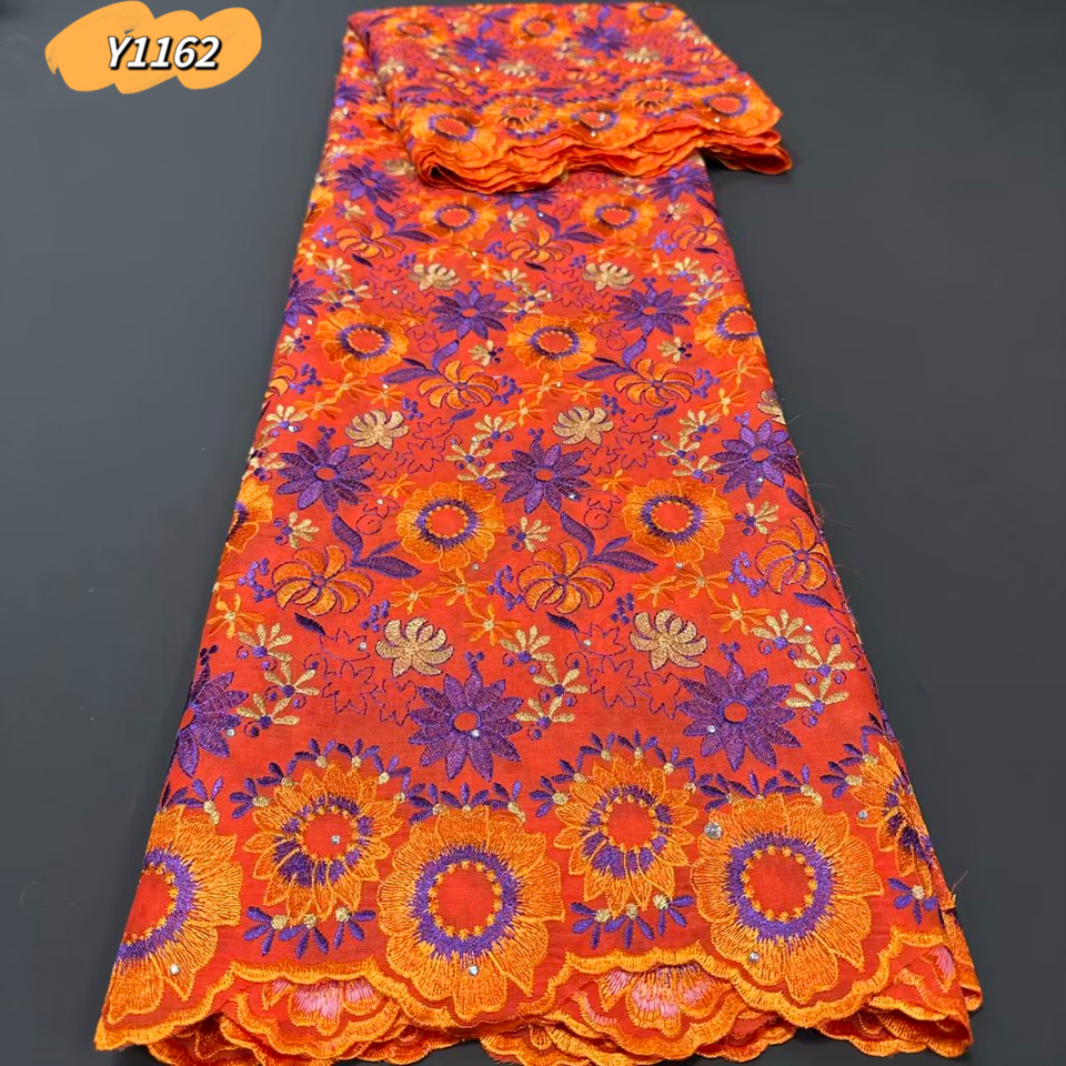 Tissu dentelle suisse en coton brodé avec gele auto