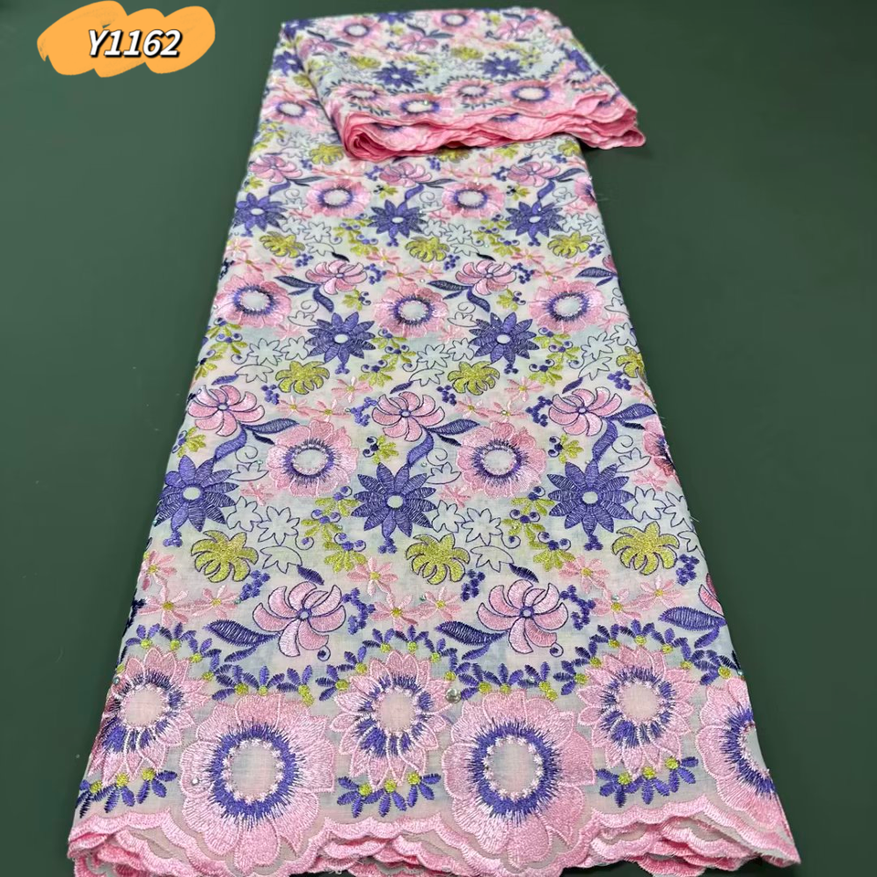 Haute qualité rose plein coton brodé dentelle dubaï 2023 coton suisse tissu pour vêtements