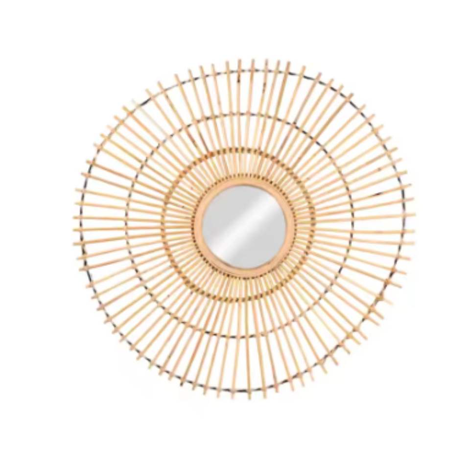 Miroir rond en rotin de haute qualité avec artisanat en bois élégant de conception de dessin animé pour la décoration murale