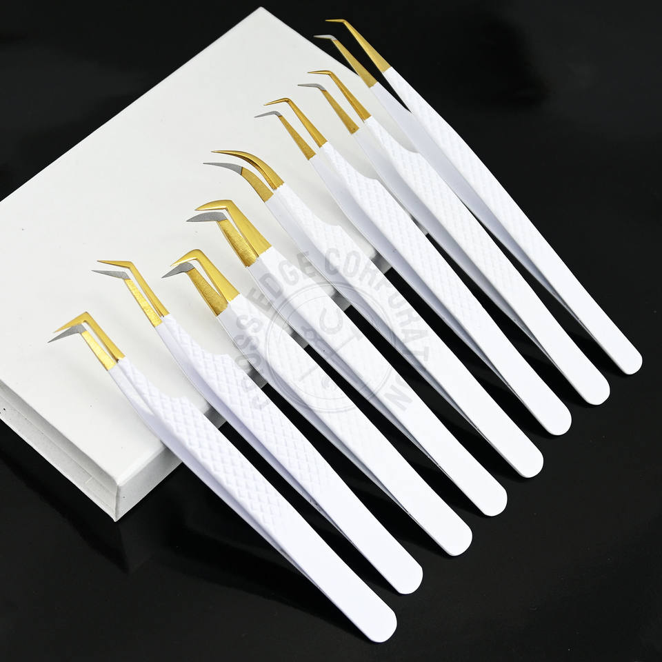 Product name:High Quality white color lash tweezers fiber gold tip Lightweight