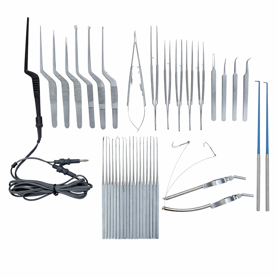 Set d'instruments de microchirurgie neurochirurgicale Yasargill, 43 pièces