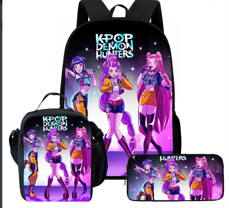 Sac à dos K-pop Devil Hunter de haute qualité, trois pièces, sac d'étudiant, sac d'école, sac de loisirs léger, sac de voyage