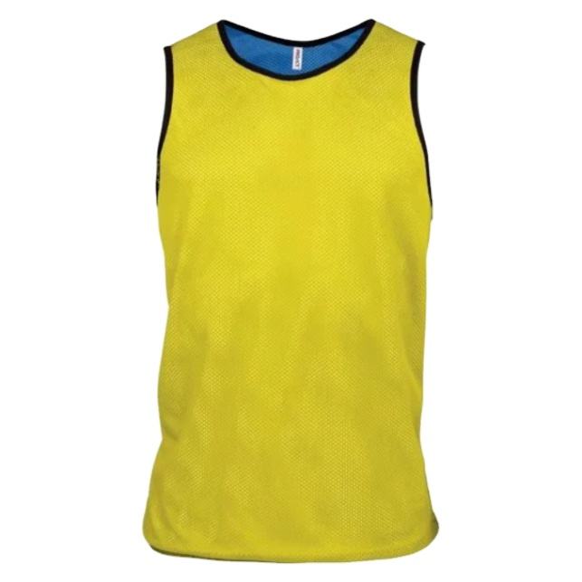 Matériau en Polyester haut de gamme, sans manches, jaune et bleu, fabricant de bavoirs en maille d'entraînement réversible en inde