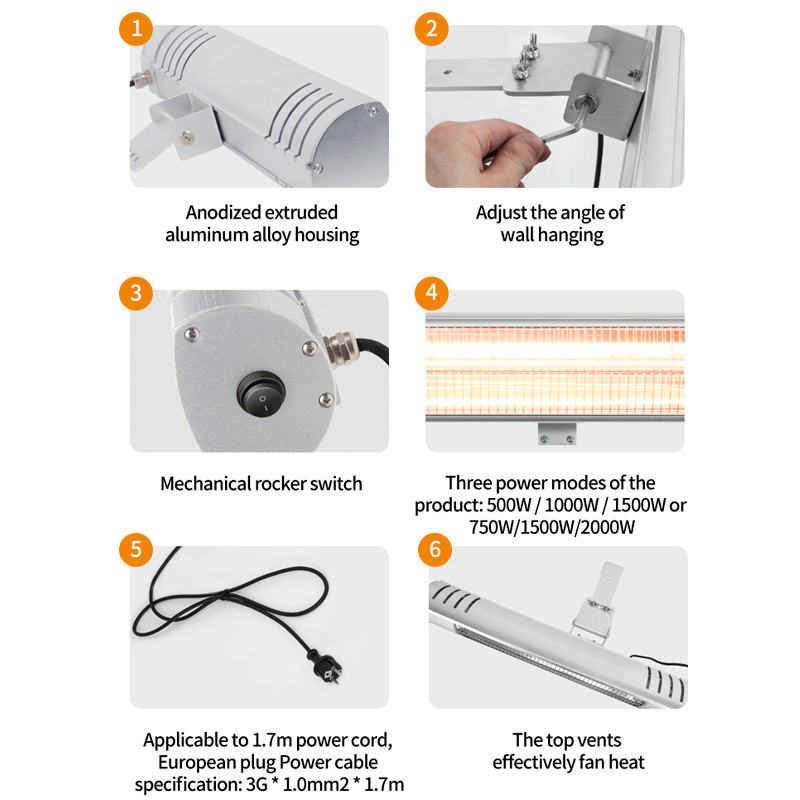Chauffage numérique de patio, réflecteur en aluminium, haute résistance
