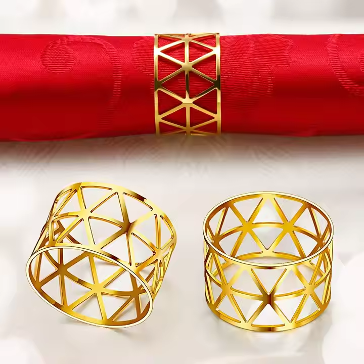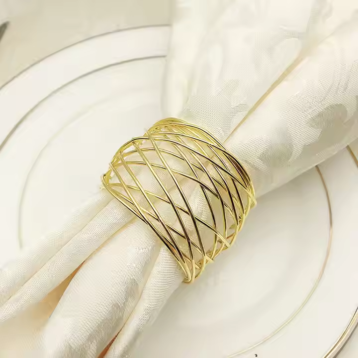 Anneaux de serviette de haute qualité plaqué or en relief rond Antique 2025 Trending Rarest Design ronds de serviette en métal à un prix abordable