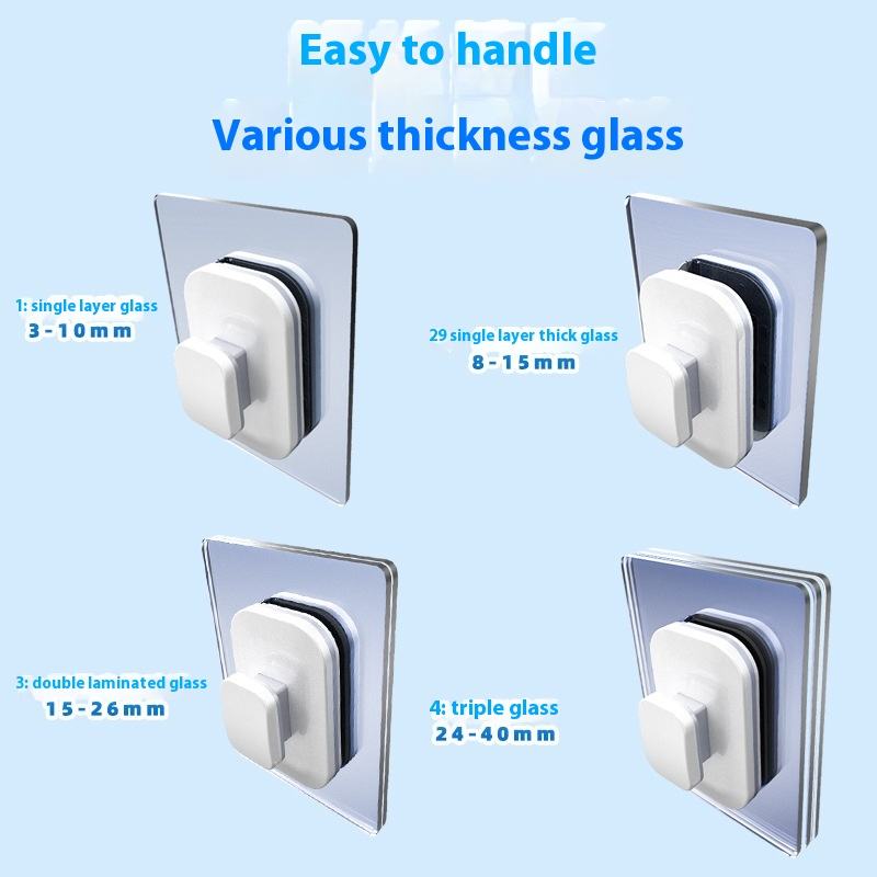 Outil de nettoyage de fenêtres domestique en plastique double face à grande hauteur, grattoir à double couche écologique à forte adhérence magnétique