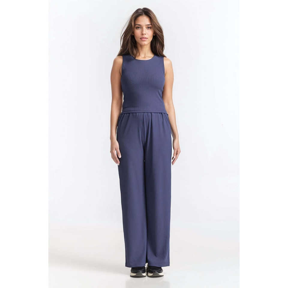 Pantalon large côtelé taille haute coupe droite respirant WM-TRKN-WS24-102, coupe évasée, taille élastique, teint uni, effet froissé
