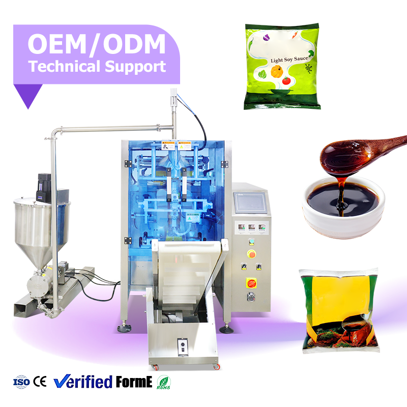 Machine d'emballage verticale automatique multifonctionnelle de qualité alimentaire à haute étanchéité pour la sauce soja, les assaisonnements et l'huile d'olive