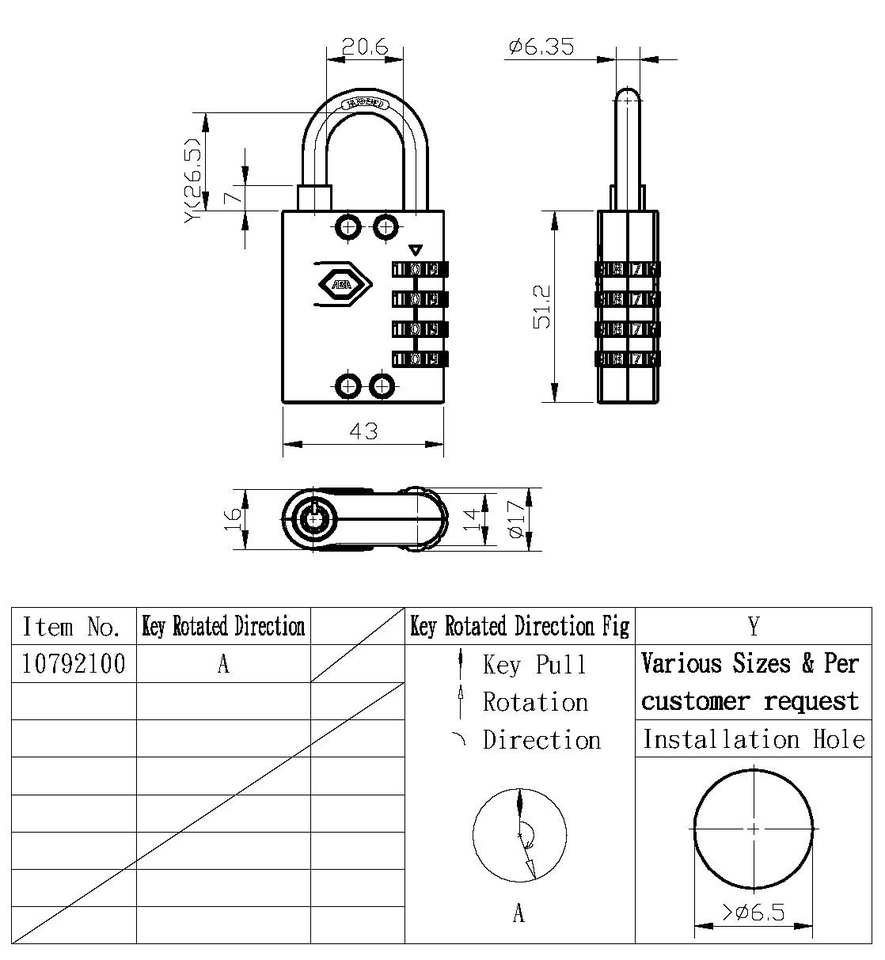 Cadenas à combinaisonNom du produit