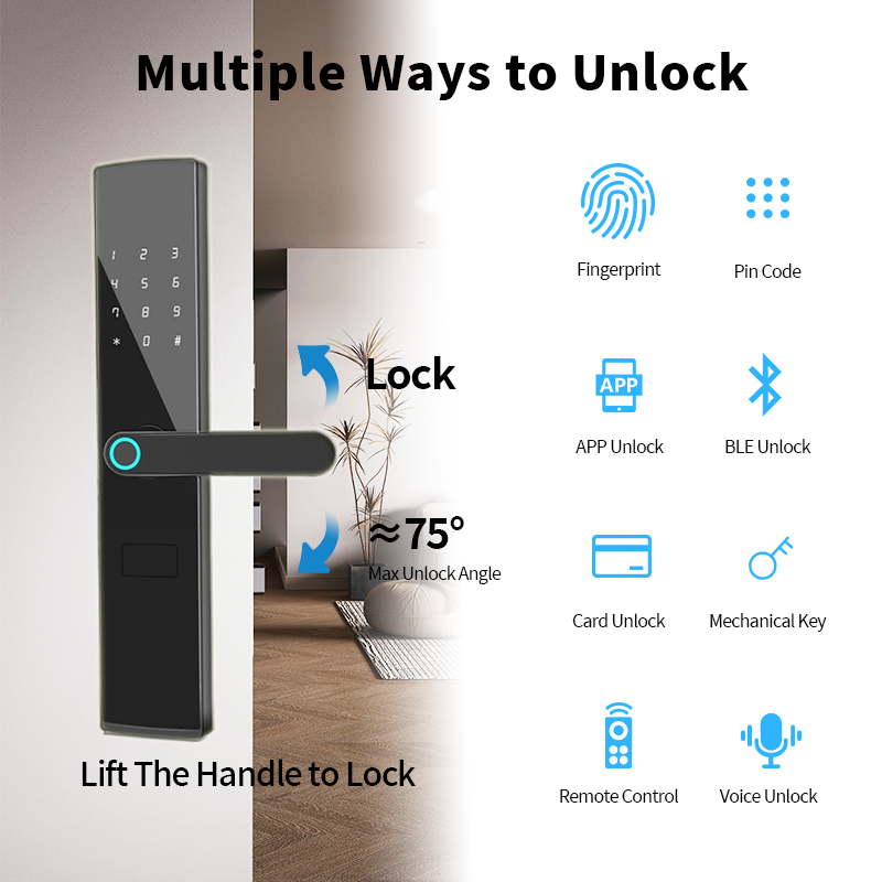 Serrure de porte d'empreintes digitales numérique en alliage d'aluminium de haute sécurité stockage en nuage-serrure de porte avant intelligente pour hôtel/Apt/maison Wi-Fi activé