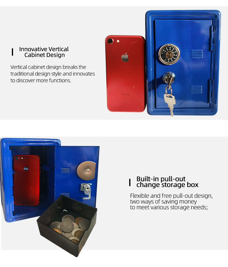 Coffre-fort miniature portable pour enfants en métal haute sécurité avec serrure à combinaison à deux clés