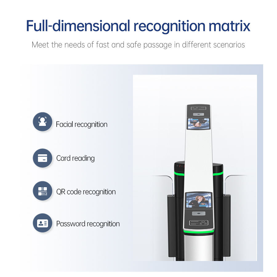 Portillon d'entrée intelligent haute sécurité en alliage d'aluminium étanche avec reconnaissance faciale, code QR et lecture de carte