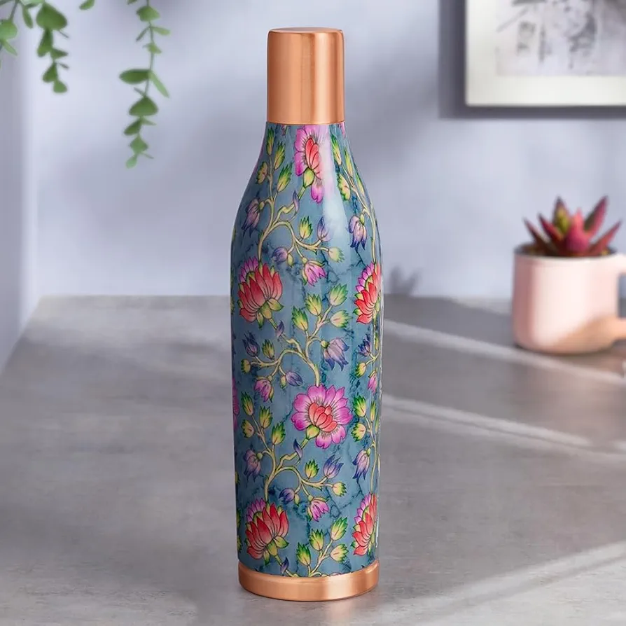 Bouteille d'eau en cuivre pur à 100 %, écologique, anti-fuite, grande capacité, avec couvercle métallique imprimé, nouveau design, emballage premium, très vendue