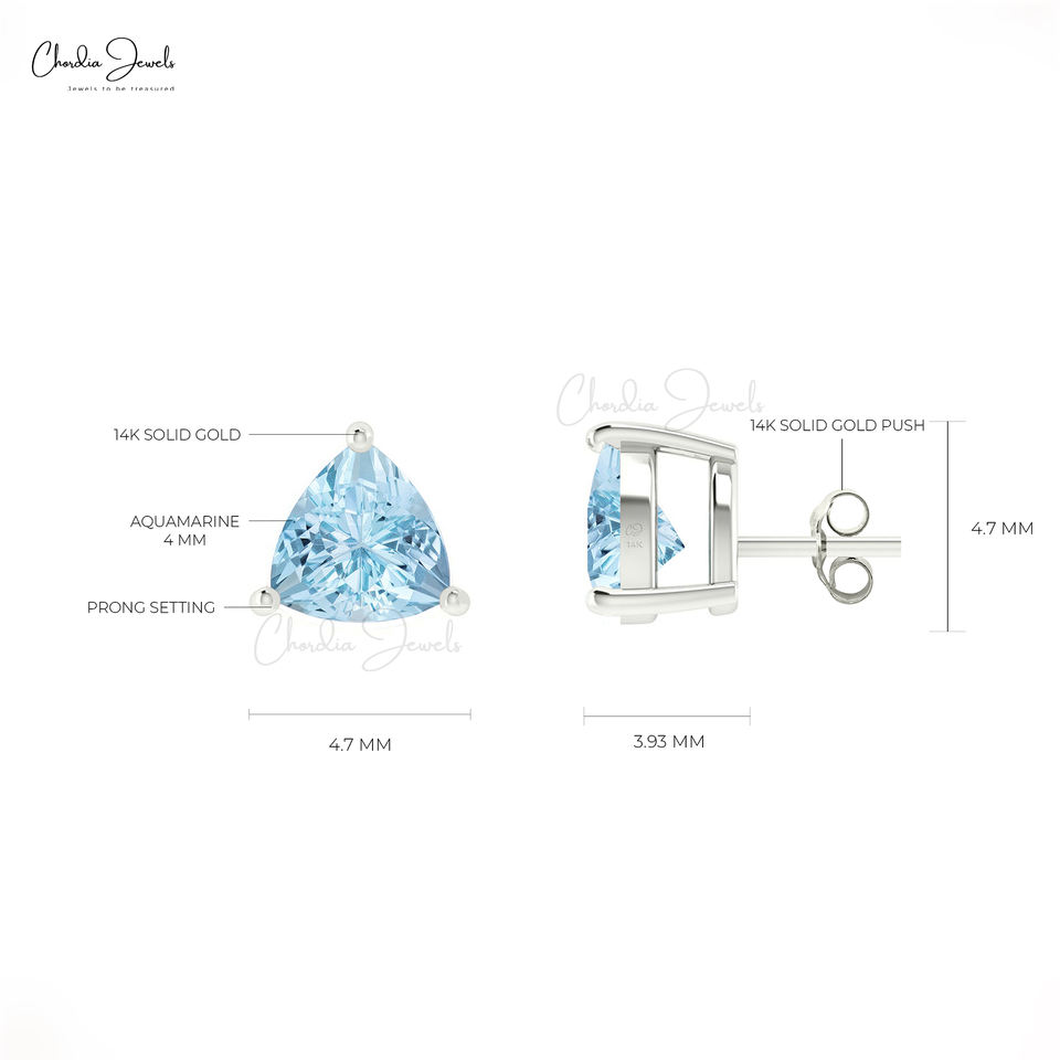Boucles d'oreilles à clous en or blanc massif 14 carats, très vendues, avec pierres précieuses naturelles en aquamarine de 0,5 carat, faites à la main, bijoux pour femmes