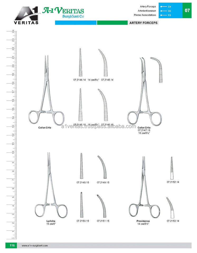 Pince à artères A-1 VERITAS Coller-Crile 16 cm en acier inoxydable, instrument chirurgical réutilisable, dispositif médical très vendu