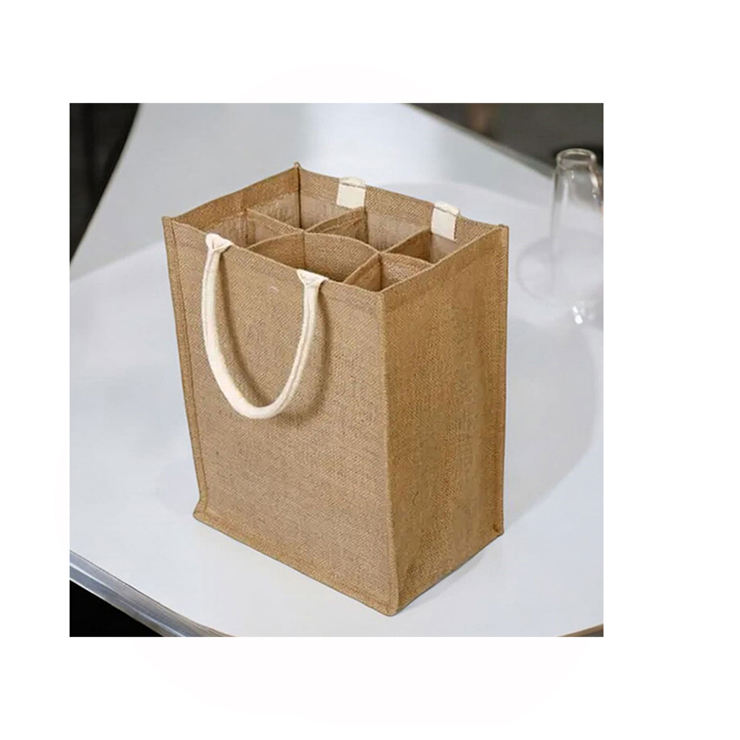 Haute vente Logo personnalisé Mini bouteille de vin sacs à provisions tissu de toile bio avec poignée en jute du fournisseur indien