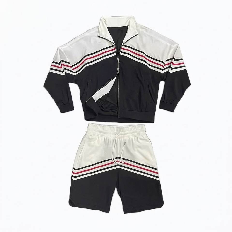 Ensemble coupe-vent en nylon noir et blanc pour homme, personnalisable avec logo, multi-lignes, idéal pour l'été, streetwear, vestes et shorts – Meilleures ventes