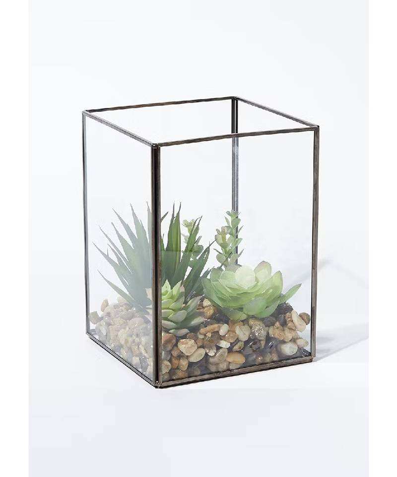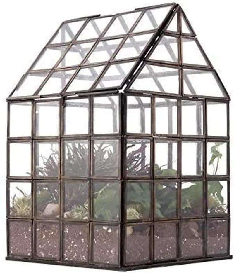 Terrarium en verre cristal géométrique en forme de cabane, cadre en métal doré, design artistique décoratif, écologique, idéal pour la maison et les mariages – Meilleures ventes