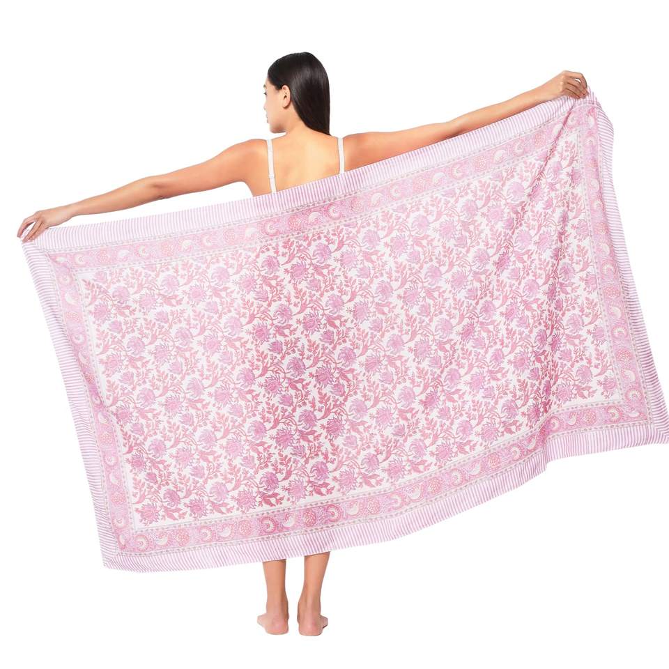 Sarong en coton imprimé à la main très vendu pour femme, léger, idéal comme cache-maillot de bain, pour la plage et les vacances d'été