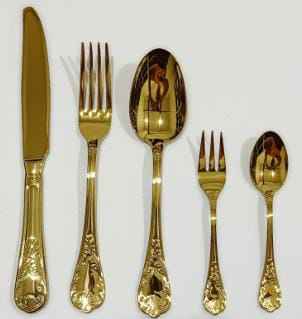 Ensemble de couverts en métal très vendu avec manche fini or, taille personnalisée, fabrication et fournisseur par l'Inde