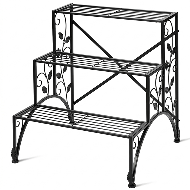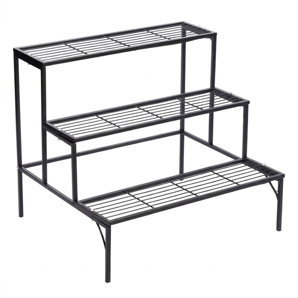 Support de plantes métallique rectangulaire à lattes, très vendu, pour exposition de fleurs en intérieur et extérieur, support de pot noir