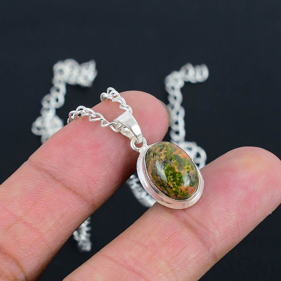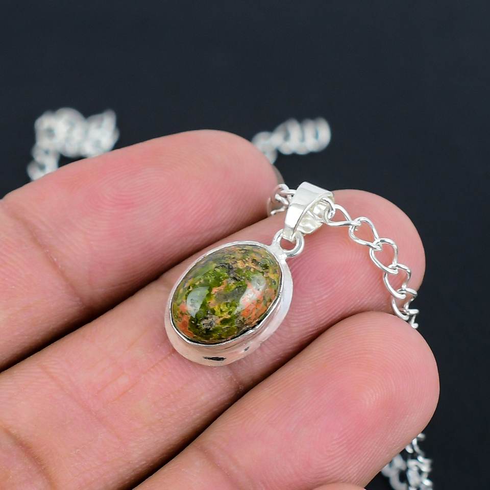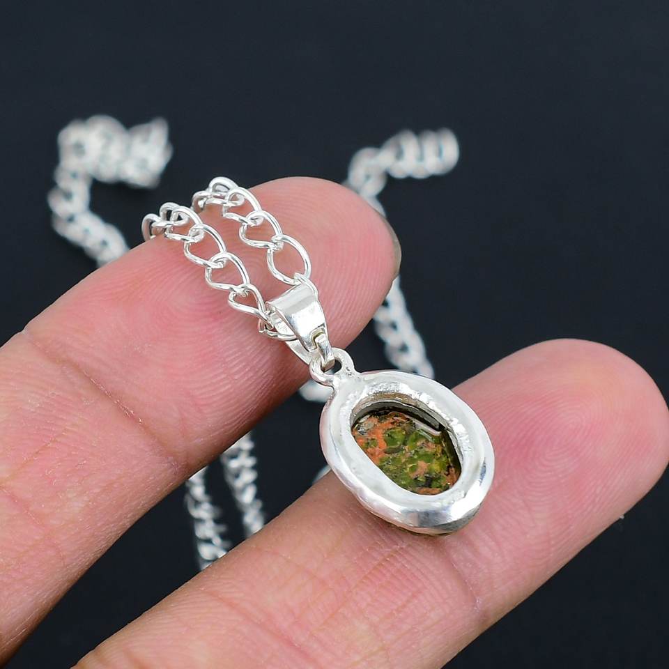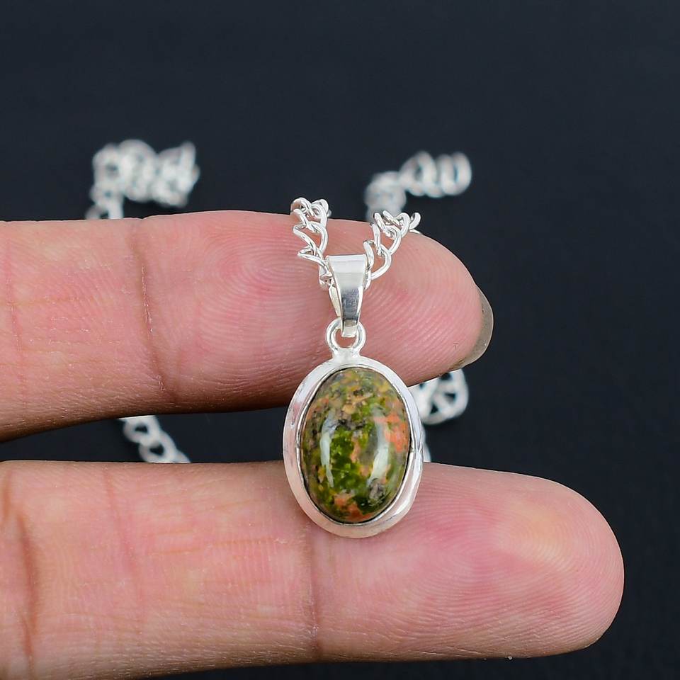 Collier pendentif en unakite naturelle très vendu, en argent sterling 925, ovale 8x10mm, fait main, délicat, minimaliste, bijoux pour femmes