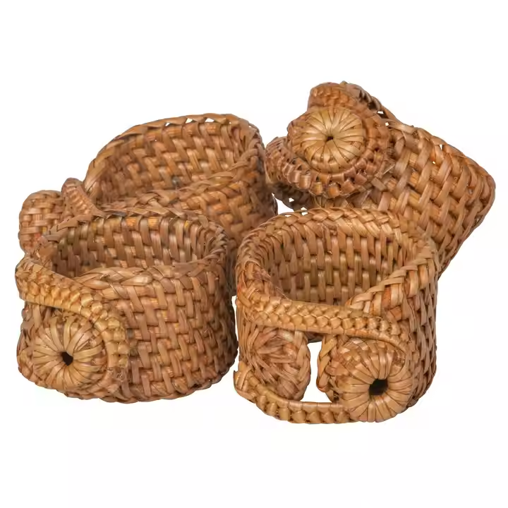 Haute vente rotin ronds de serviette ensemble pour mariages Table en gros rustique porte-mouchoirs fête tissé rond de serviette usine directe