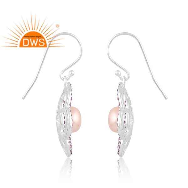 Boucles d'oreilles en argent sterling avec perle naturelle et améthyste, design floral, fabrication de bijoux sur mesure, très demandées