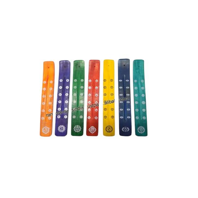Haute vente plateau en bois porte-bâton d'encens brûleur d'encens attrape-cendres sept Chakra sept couleurs ensemble de sept pièces 10 pouces