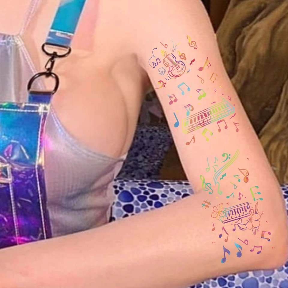 Autocollants de tatouage temporaire haute sensation Bar de concert transfrontalier Discothèque Carnaval Notes de musique Papier Corps Application