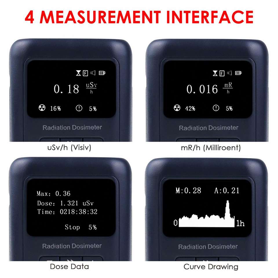 Unité de mesure:µSv/h, mR/h, µSv