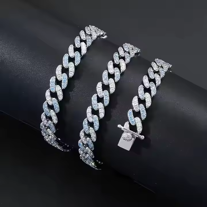 Collier chaîne cubaine haute brillance, diamant moissanite, bijoux glacés tendance pour un style streetwear élégant
