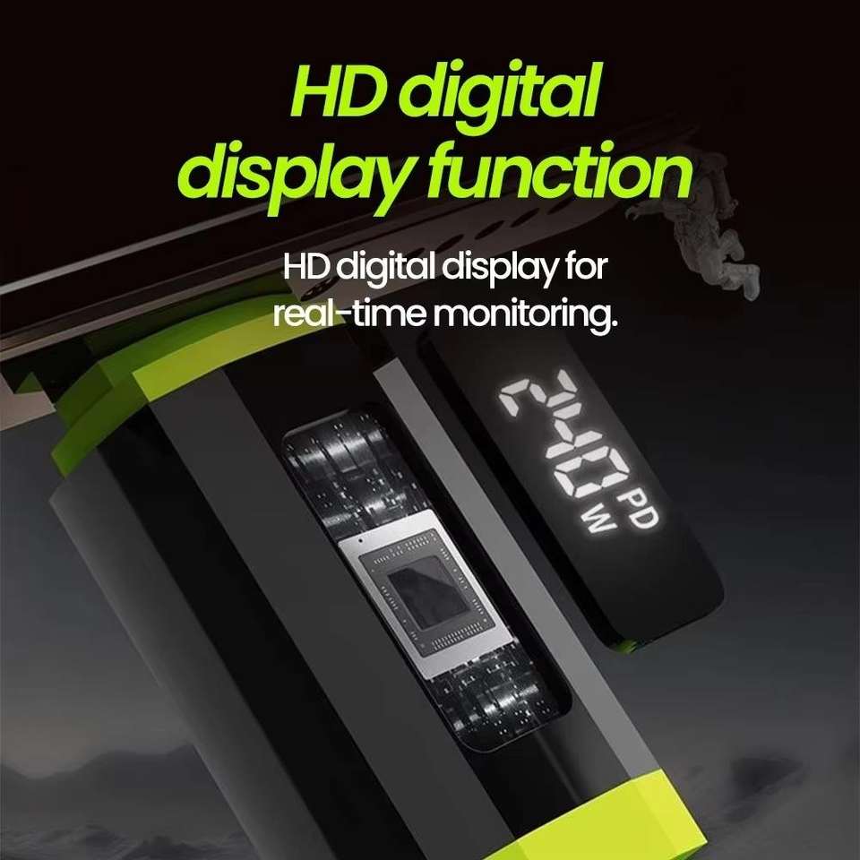 Câble USB-C vers USB-C à charge rapide haute vitesse 1,5 m 240 W avec écran numérique HD pour téléphone et écouteurs, en silicone