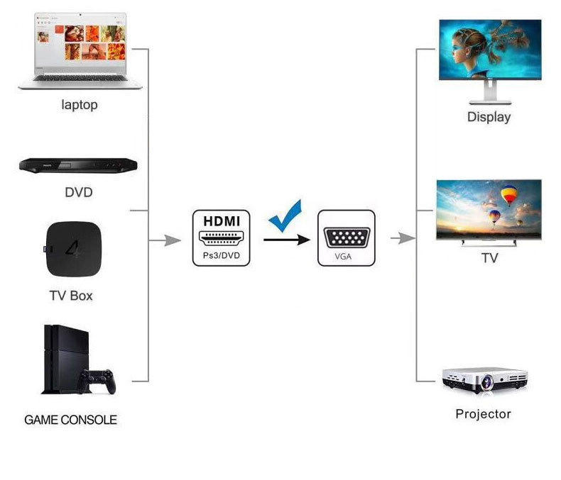 High Speed 1.8M HDMI 1.4 to VGA Converter Adapter HDMI to VGA Cable for Projector Laptop and Monitor