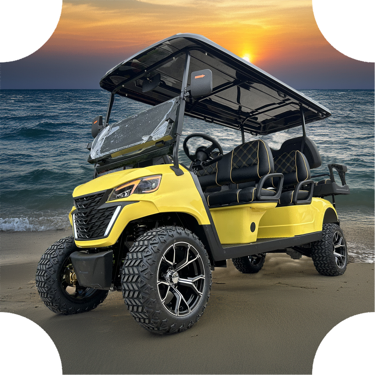 Design antique à grande vitesse 2 + 2 sièges 7500W Lithium Premium voitures de golf tout-terrain voiturette de golf électrique