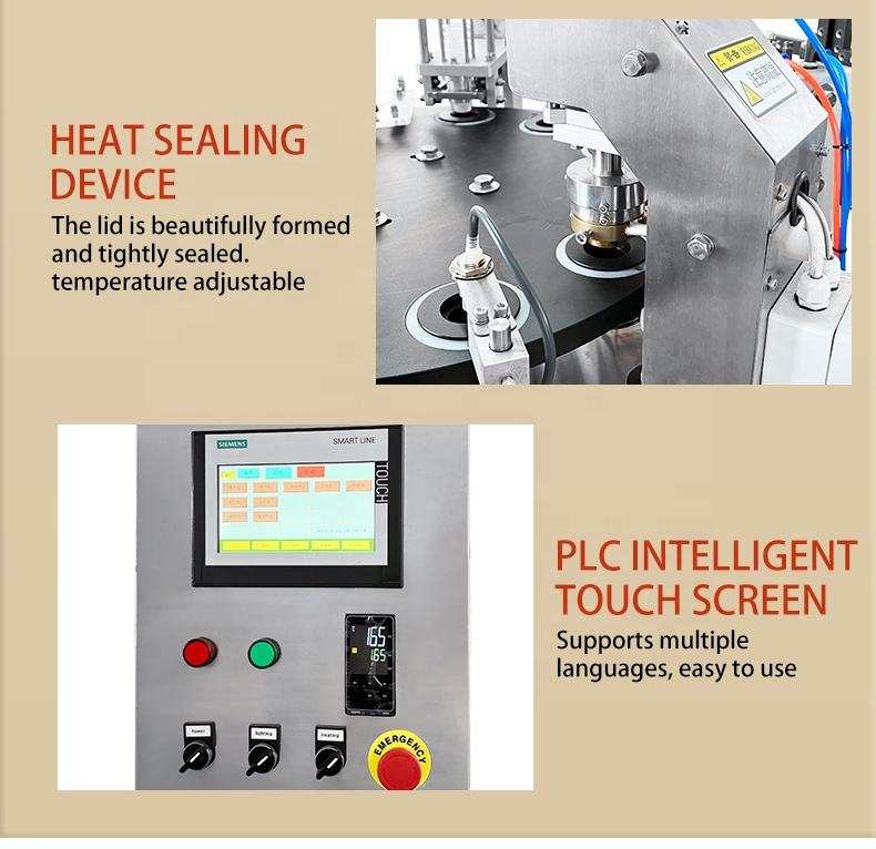 Métal, Papier, Plastique, Autre, Machine de remplissage et de scellage de capsules de café de type rotatif