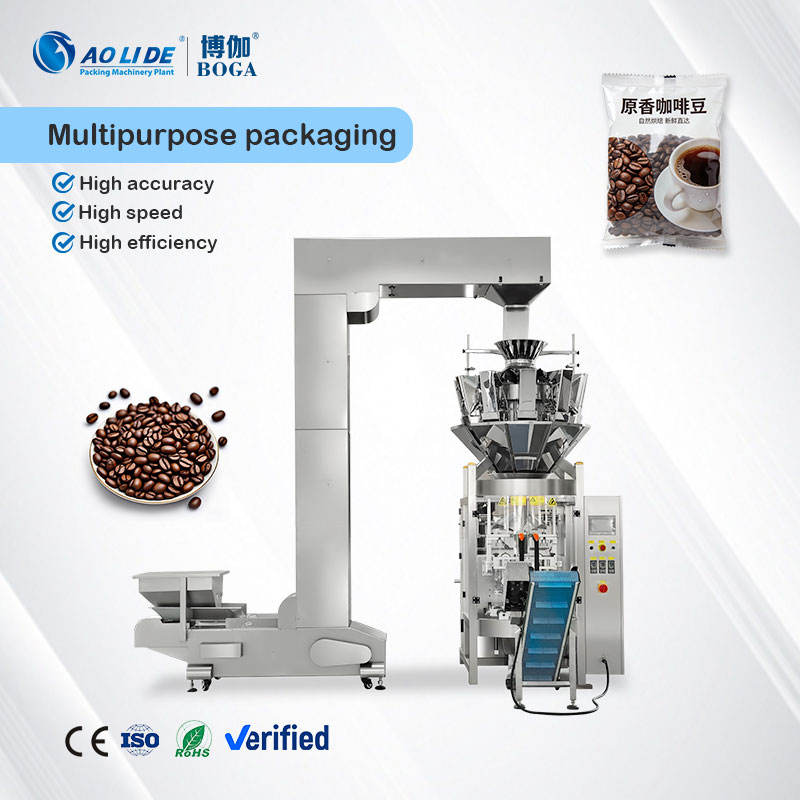 Machine d'emballage verticale automatique haute vitesse pour sachets de café, de fèves de cacao, avec étiquetage, bouchage et emballage