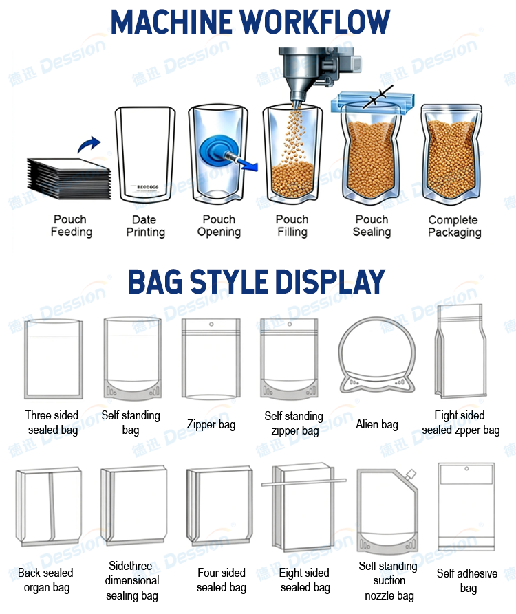 Fonction principale:Pesage, formage, remplissage, scellage