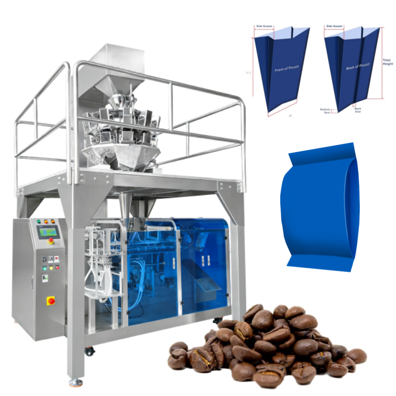 Machine de formage, scellage et remplissage haute vitesse pour sachets à soufflet pour granulés de café et feuilles de thé, pour l'emballage en centre de conditionnement
