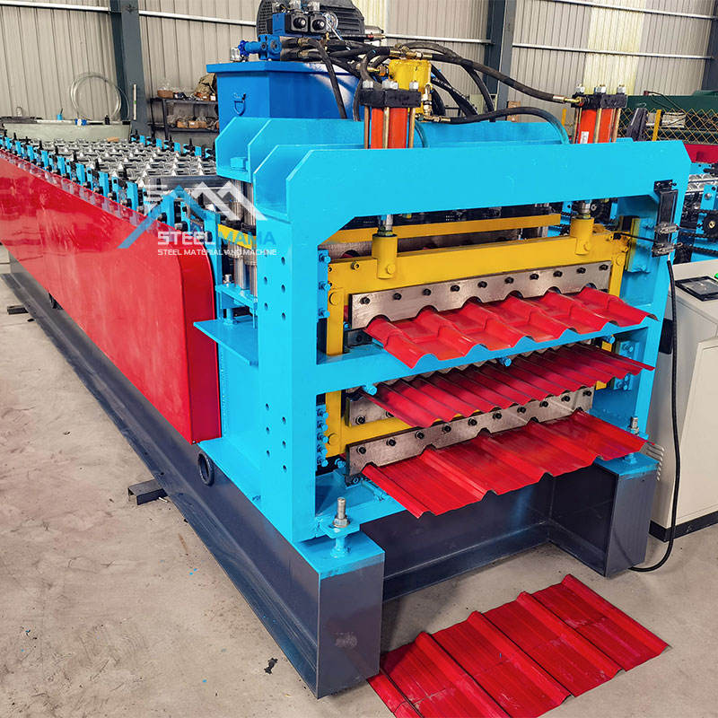 Petit pain de tôle d'acier de couleur de triple couche de tuile ondulée et trapézoïdale et vitrée à grande vitesse formant la machine