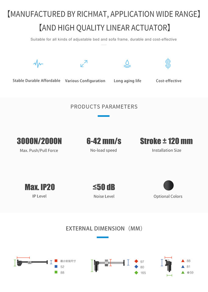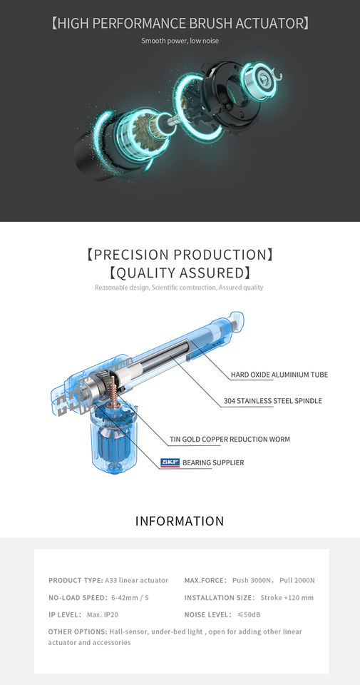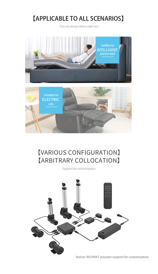 Actionneurs linéaires électriques à grande vitesse 800mm pour lit réglable à la maison