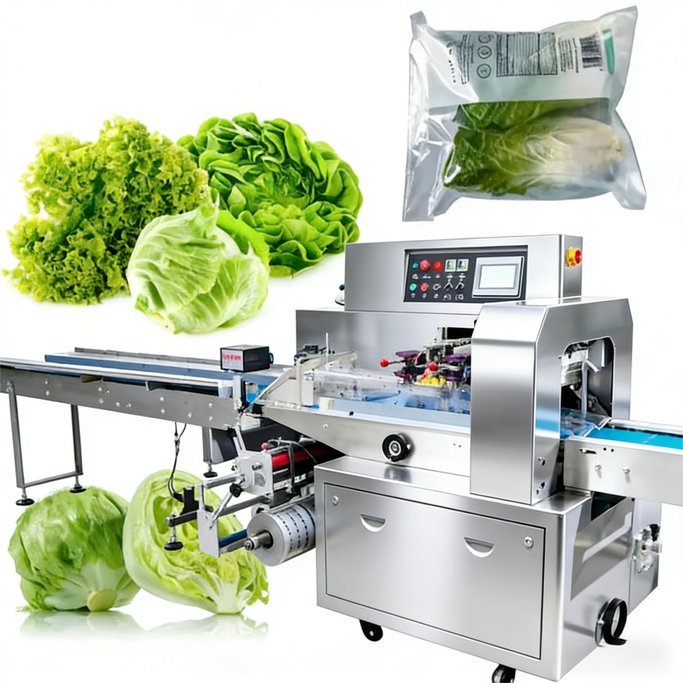 Machine à emballer d'oreiller fraîchement cueillie à grande vitesse Machine d'emballage de poulet frais de laitue de légumes et de fruits frais