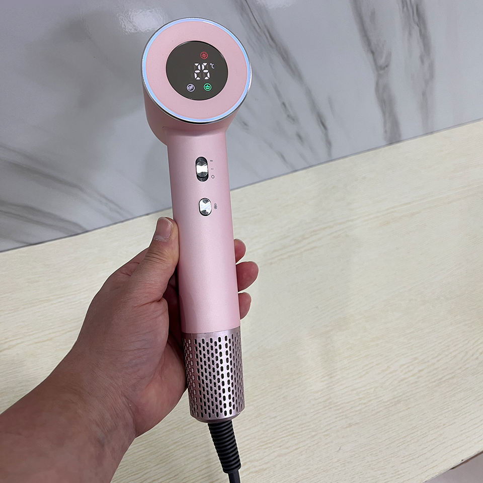 Sèche-cheveux haute vitesse avec écran LCD, sèche-cheveux ionique avec fonction de refroidissement pour usage en salon, logo et emballage personnalisés en usine