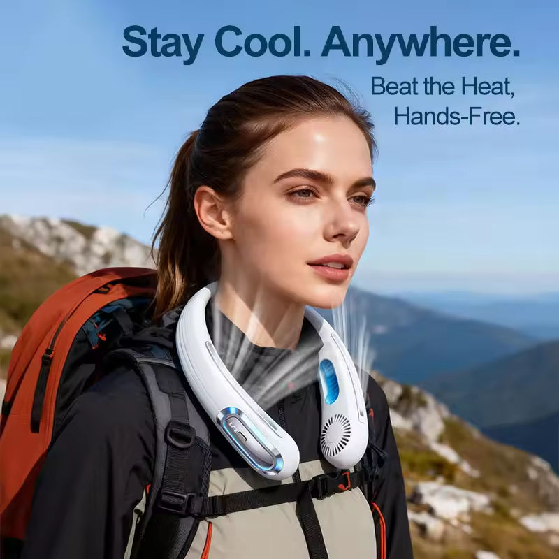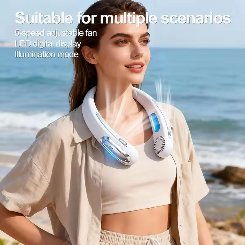 Ventilateur de cou haute vitesse avec logo personnalisé, rechargeable, portable, sans lame, avec LED, pour le vélo, la randonnée, le camping, climatiseur de cou