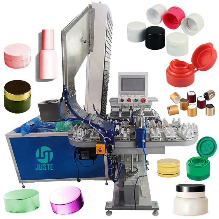 Machine d'impression par tampon à grande vitesse Imprimante de tampon d'alimentation entièrement automatique avec système de ligne de convoyeur pour capuchon rotatif à torsion de fermeture
