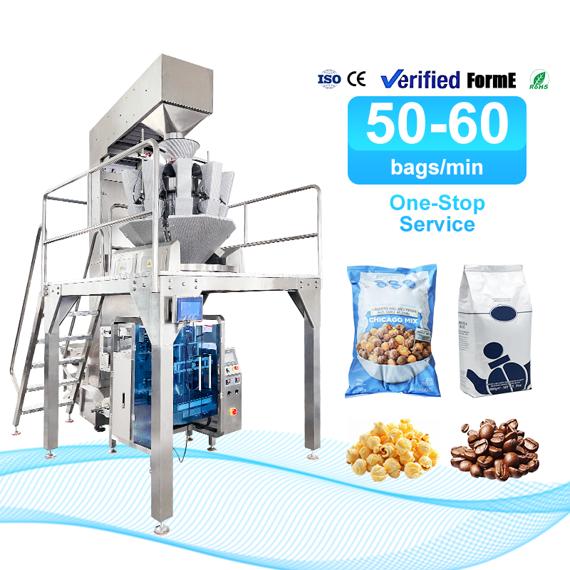 Machine d'emballage verticale automatique de haute précision à grande vitesse pour le pop-corn, les grains de café et les granulés