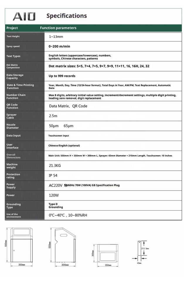 Type de plat:Imprimante CIJ