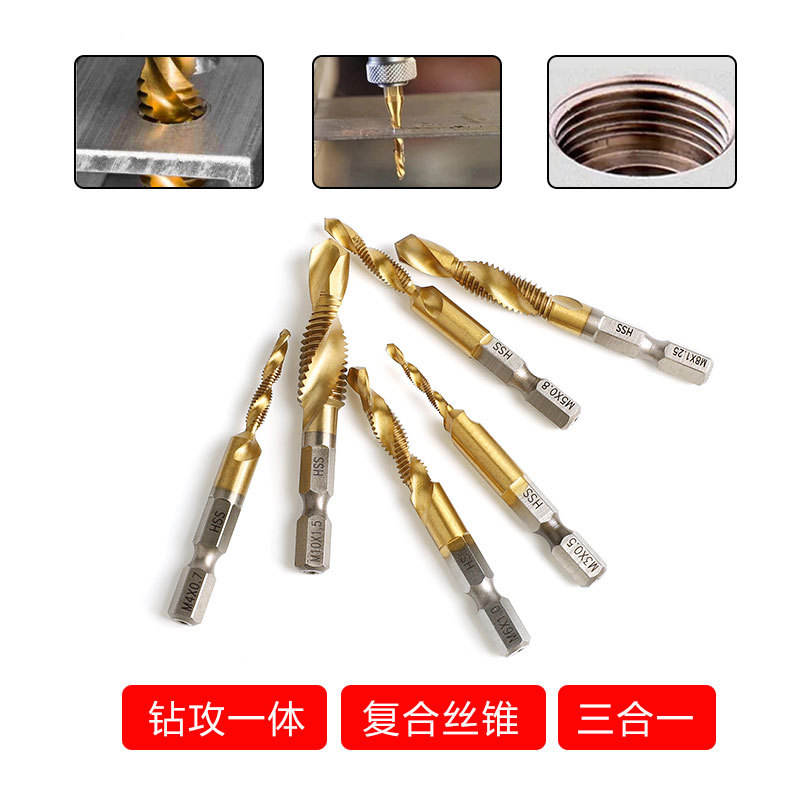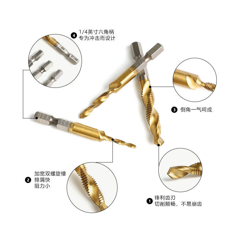 Jeu de tarauds et forets en acier rapide composite M35 avec revêtement nano bleu au nitride de carbone pour perçage, taraudage et chanfreinage