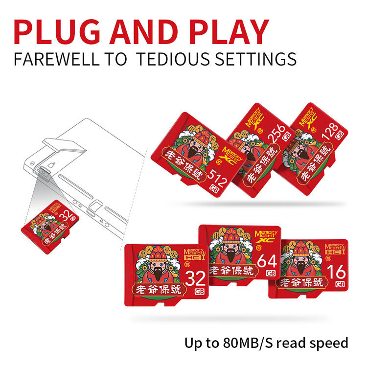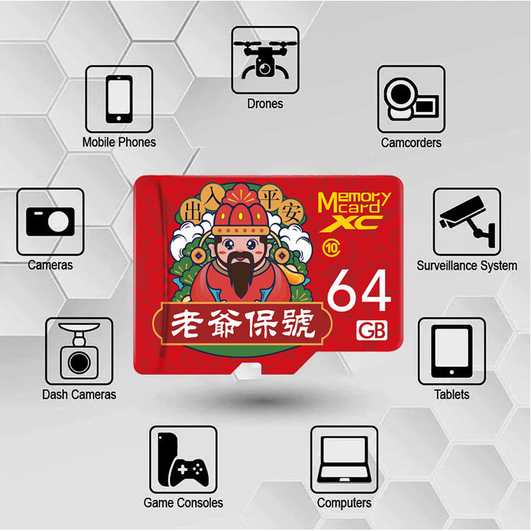 Carte Micro TF U3 haute vitesse 128 Go/256 Go/512 Go motif traditionnel chinois Dieu richesse bénisse Style Mini carte mémoire SDXC en Stock